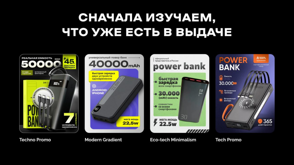 Если у конкурентов очень пёстрые изображения, яркие, но текст читается не очень — значит, это вау-контент. На их фоне вы можете выделиться более сдержанной, аккуратной карточкой, где текст читается лучше.»
