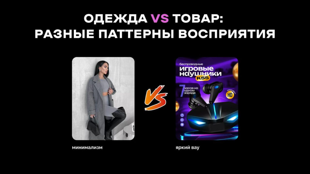 «Когда вы продаёте товары, там уже другой паттерн. Там паттерн качества изделия. Здесь добавляется инфографика, и её в разы больше, чем на карточке одежды.»
