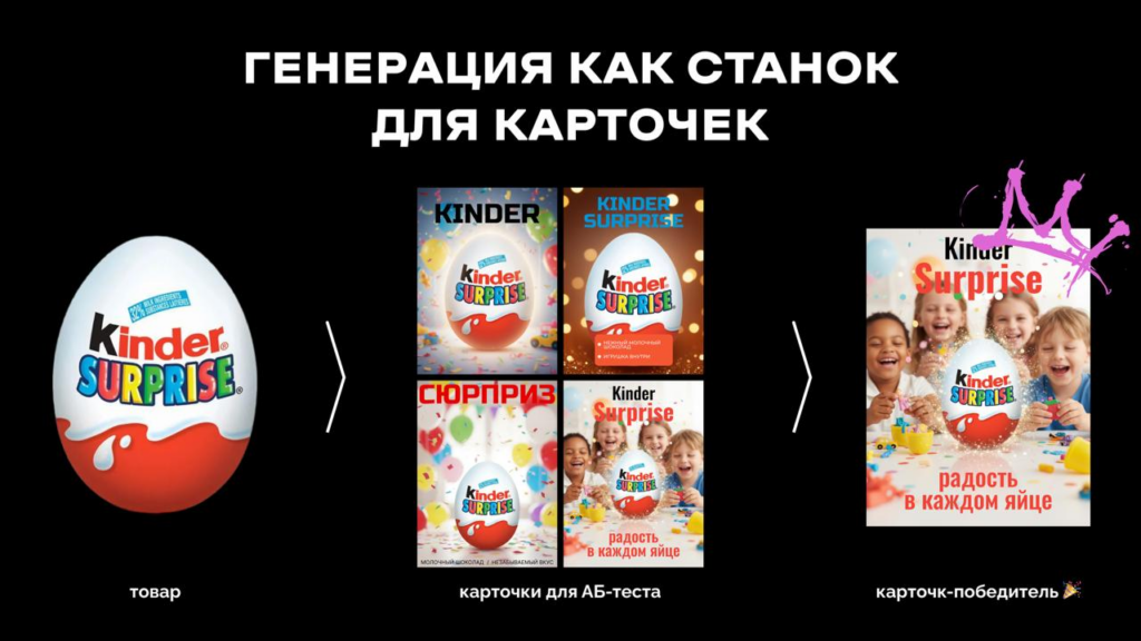 «ИИ — это возможность быстро создавать карточки и платить при этом меньшие деньги. Растить CTR за счёт большого количества попыток, A/B-тестов, разных гипотез. Не одной гипотезы, как раньше, когда дизайнер делал одну версию за неделю.»